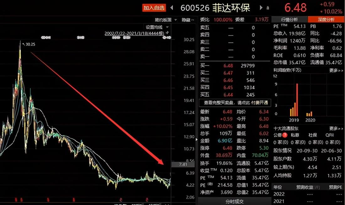 2015年以来,菲达环保股价虽有起伏,但大趋势一直向下,从2015年的最高30.25元一路下挫至2020年春节后的最低3.43元。