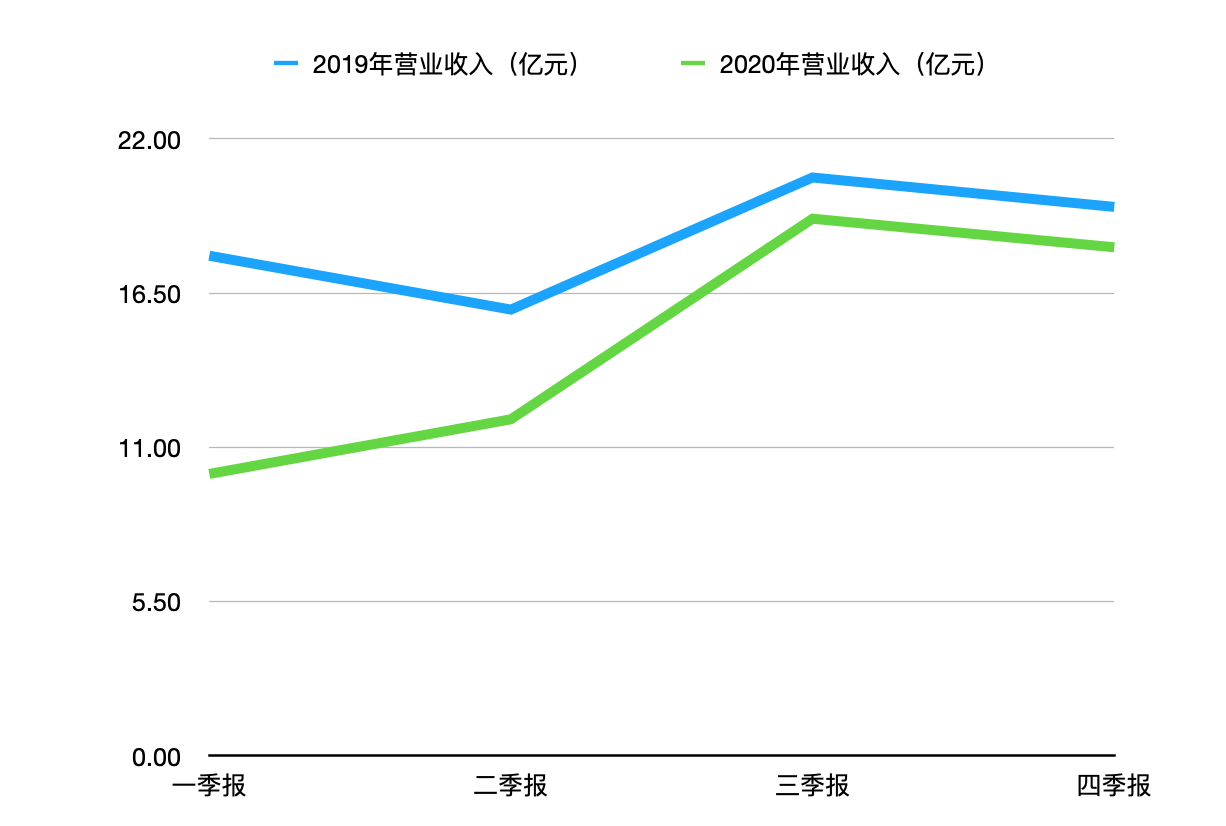 同程艺龙2020年营业收入、净利润数据以及与2019年同期的对比。(本文图表均由澎湃新闻记者 唐莹莹 制)虽然同程艺龙2020年的营业收入和净利润与2019年相比均有所下滑,但得益于中国旅游市场尤其是下沉市场的强劲复苏,同程艺龙从2020年二季度开始呈现出加速复苏的态势。从全年的单季度财务数据来看,同程艺龙的营业收入和净利润同比跌幅均持续收窄。