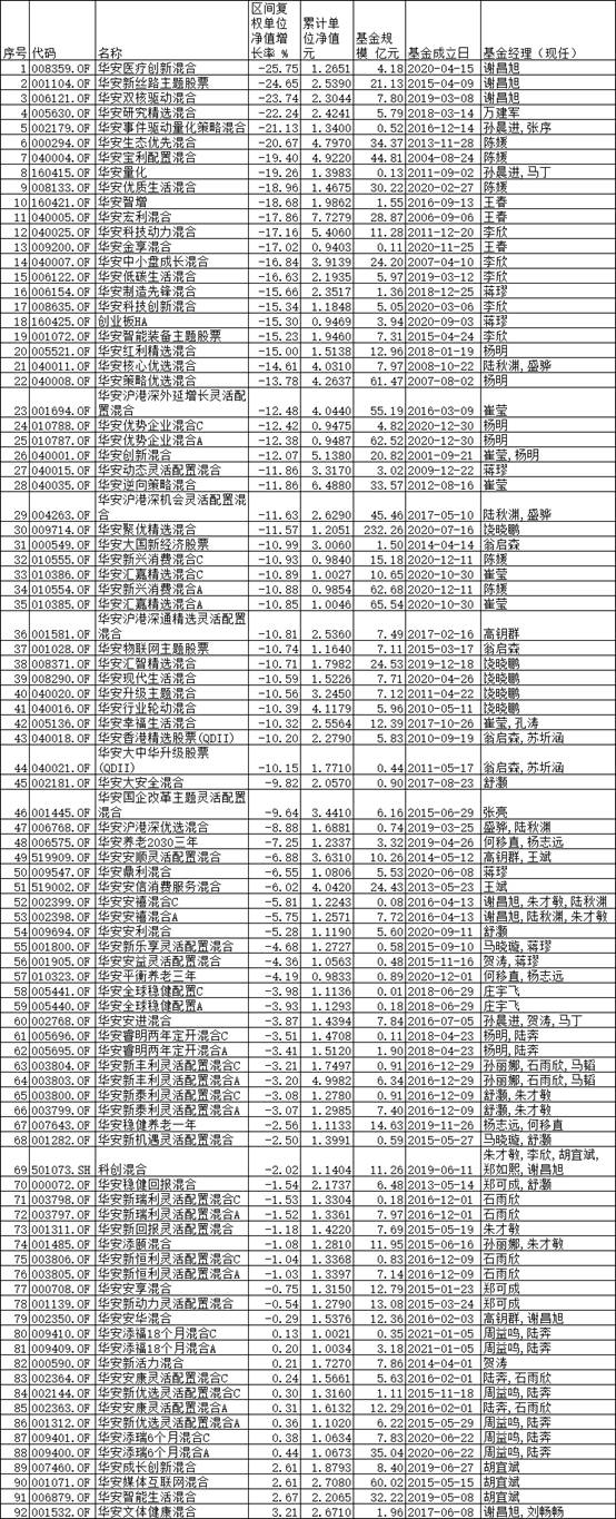 其中,基金经理谢昌旭所管理的3只基金垫底,华安医疗创新混合(008359)、华安新丝路主题股票(001104)、华安双核驱动混合(006121)节后分别亏损25.75%、24.65%、23.74%。