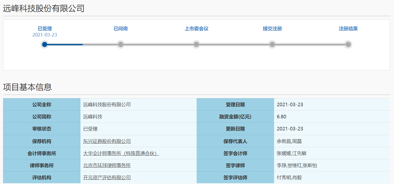 3月23日,远峰科技股份有限公司(下称“远峰科技”)科创板IPO获上交所受理,本次拟发行不超过2200万股,募资6.8亿元。