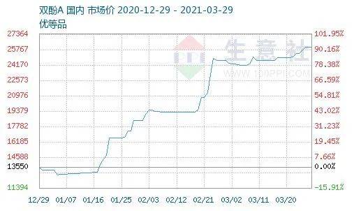 部分PC生产企业表示, 作为PC的上游原材料,双酚A的价格走势一直都掌握着PC的“生杀大权”。近期双酚A涨势迅猛,29日报价在26033元/吨左右,年内上涨12991元/吨, 涨幅近100%,且货源非常紧张,无任何让利空间。