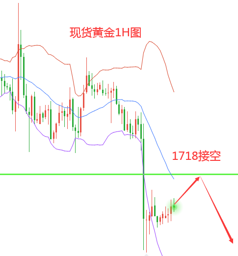 持续两周的震荡横盘,而行情的爆发,则在一瞬间完成,昨日白盘还是1722-1732的震荡,美盘阶段直接下破击穿1720之后摔低至1705.40低位,且日线收在低位,中阴线收低,打破十字K线整理格调。昨日的大阴线下跌,今日以反弹高空为主。颈线压制之下继续空,我们看到的反弹也只能视为技术面修正,强压在昨日顶底转换压制位1721-1723附近,这里是近几个交易日多次测试的低点,跌破后形成顶底转换压制,这里是强压位。操作策略:反弹1718附近空,损1725,目标1705-170,破位1700继续下看1695。
