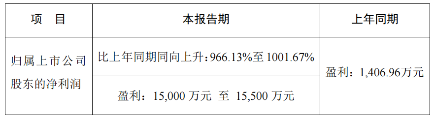 公司预计2021年一季度归属于上市公司股东的净利润1.5亿元至1.55亿元,比上年同期增长966.13%至1001.67%。