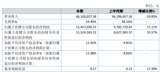 挖贝网4月7日,科特环保(830971)近日发布2020年度报告,报告期内公司实现营业收入66,100,027.58元,同比下滑29.83%;归属于挂牌公司股东的净利润11,457,030.22元,同比增长17.11%。