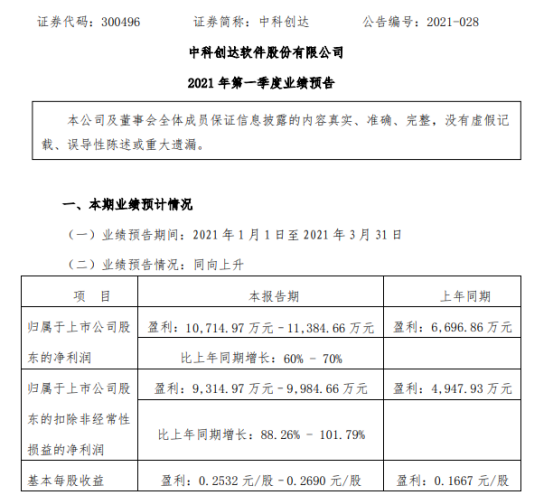 挖贝网4月7日,中科创达(300496)近日发布2021年第一季度业绩预告,预计业绩同向上升。报告期内归属于上市公司股东的净利润10,714.97万元–11,384.66万元,比上年同期增长60%-70%;基本每股收益0.2532元/股–0.2690元/股。