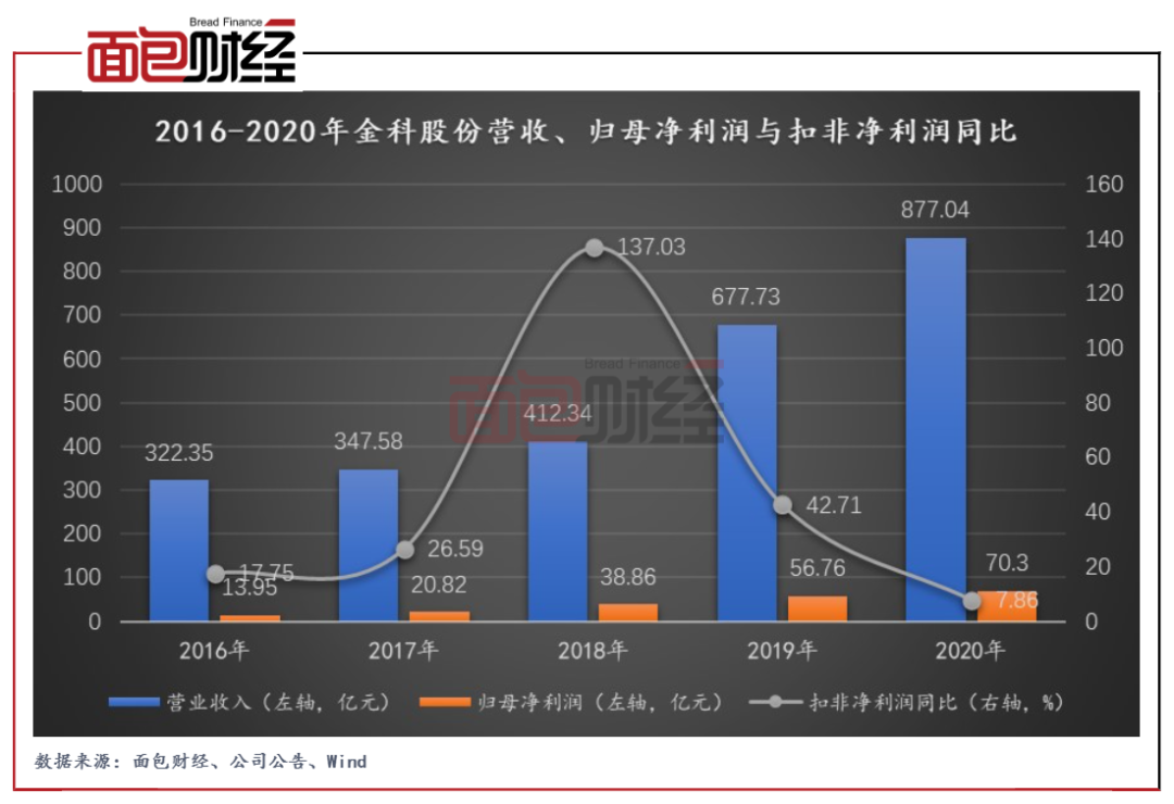 图1:2016-2020年金科股份营收、归母净利润及扣非净利润同比