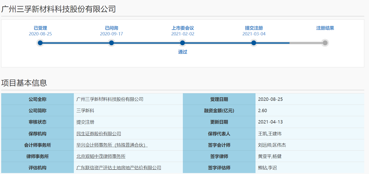4月14日,资本邦了解到,广州三孚新材料科技股份有限公司(下称“三孚新科”)科创板IPO提交注册。
