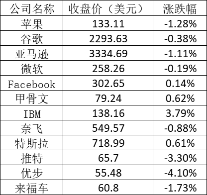 道琼斯指数收于33821.30点,下跌256.33点,跌幅0.75%;标准普尔500指数收于4134.94点,跌幅0.68%;纳斯达克综合指数收于13786.27点,跌幅0.92%。
