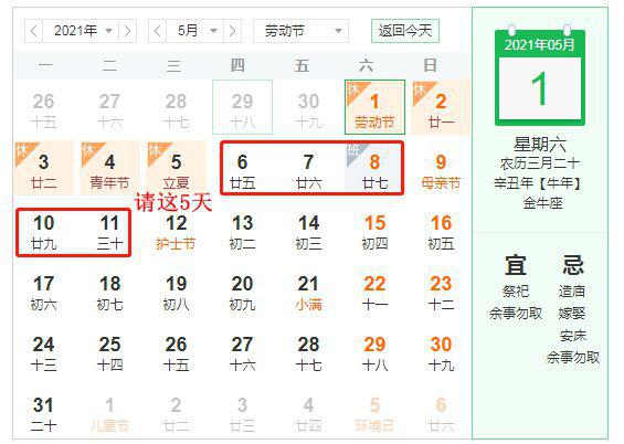 中新经纬客户端4月19日电(熊家丽)还有不到两周时间,大家将迎来2021年"五一"国际劳动节。中新经纬客户端发现,工作满一年的小伙伴,若在五一小长假灵活"拼假",可拥有11天的超长假期;此外,若选择在假期加班5天,获得的加班工资相当于平时工作11天!