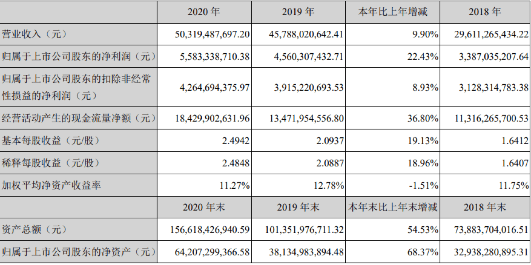 4月27日晚间,“电池茅”宁德时代发布2020年度报告。年报显示,2020年,公司实现营业收入503.13亿元,同比增长9.90%;实现净利润55.83亿元,同比增长22.43%。