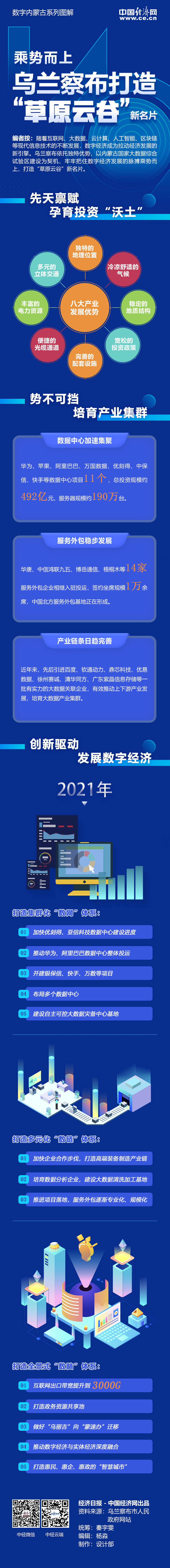 编者按:随着互联网、大数据、云计算、人工智能、区块链等现代信息技术的不断发展,数字经济成为拉动经济发展的新引擎。乌兰察布依托独特优势,以内蒙古国家大数据综合试验区建设为契机,牢牢把住数字经济发展的脉搏乘势而上,打造“草原云谷”新名片。