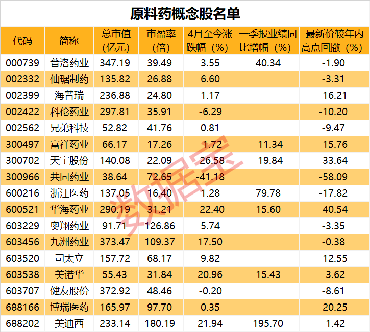 A股市场来看,美迪西、博瑞医药、天宇股份、美诺华、奥翔药业、普洛药业、司太立、健友股份、海普瑞等多只个股在特色原料药及专利方面拥有一定的技术性壁垒。