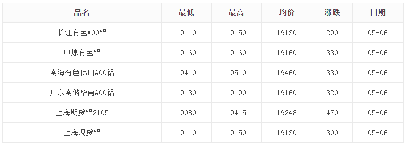 5月6日铝价格