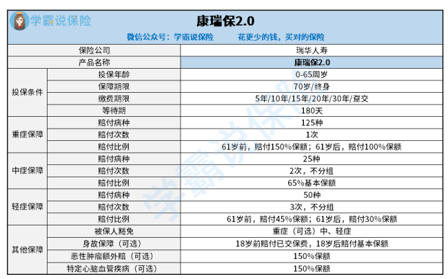从上图可以看到,康瑞保2.0保障了很多疾病,覆盖了疾病所有的过程,可以说是比较全面的。