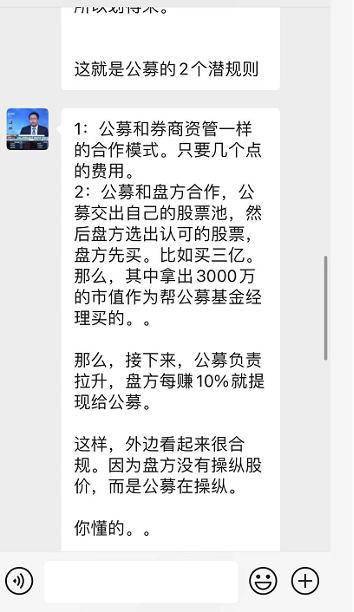 他口中的“潜规则”是指盘方找到基金经理,从基金经理的股票池中挑选容易操作的标的,或者基金经理告诉盘方,哪些股票即将进入股票池,盘方提前“埋伏”在这些股票中。