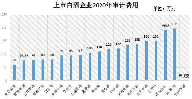 从已经披露的数据来看,五粮液的审计费用最高,达到198万元,洋河股份以190.8万元位列第2,水井坊和老白干酒以150万元并列第3名,营业收入最高的贵州茅台以138万元位居第5。审计费用最低的是皇台酒业,仅为60万元,不足五粮液的三分之一。