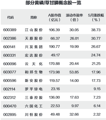 5只黄磷草甘膦概念股一季度业绩翻倍增长