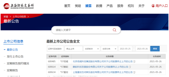 同日,上交所对*ST信威、*ST鹏起、*ST富控作出终止上市决定。