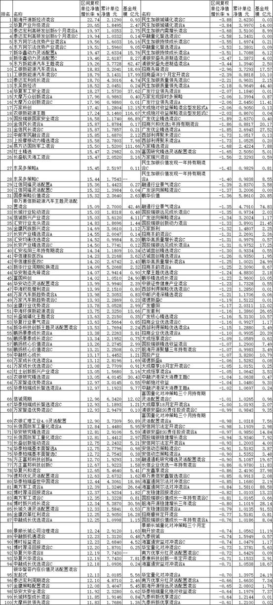 5月份混合型基金涨跌幅前100名