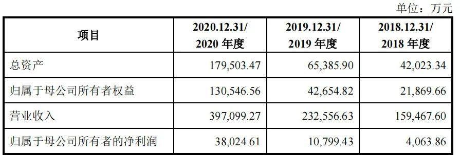 2018到2020年的营收分别约15.95亿元、23.26亿元、39.71亿元;归母净利润分别为4063万元、1.08亿元、3.8亿元。