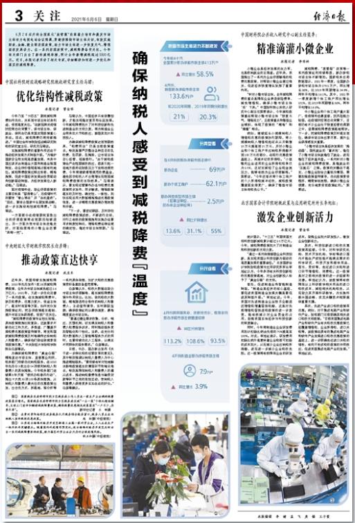 中国社科院财经战略研究院税收研究室主任马珺:优化结构性减税政策本报记者 曾金华6月2日召开的全国深化“放管服”改革着力培育和激发市场主体活力电视电话会议强调,要继续围绕市场主体关切,有效实施财政、金融、就业等宏观政策,助力市场主体进一步恢复元气、增强经济发展动力。在一系列宏观政策中,减税降费备受关注。今年有关部门出台了新的减税举措,预计全年新增减税超过5500亿元。近日,本报记者采访了相关专家,详细解读如何进一步优化和落实好减税降费。今年乃至“十四五”期间减税降费如何优化,关系到市场主体切身利益,受到高度关注。“在新冠肺炎疫情防控常态化背景下,保市场主体、保就业、保民生仍是我国宏观政策重心所在。因此,减税降费仍将持续推进。”中国社会科学院财经战略研究院税收研究室主任、研究员马珺说。实施减税降费的重要作用还在于推动经济发展方式转型升级。“为维护国家安全和实现高质量发展,未来中国应谋求由制造业大国向制造业强国转变,在全球价值链高端占据有利地位。减税降费政策应顺应形势、精准施策,促进中国经济发展由投资驱动向创新驱动转型,为经济发展注入新动能。”马珺说。面对疫情冲击,助企纾困政策的主要目标是“留得青山”,后疫情时代则要使“青山常在”并“生机盎然”。“因此,要结合国家中长期发展战略,进一步实施结构性减税降费。”马珺说。一方面部分在疫情期间紧急出台的纾困政策将在到期后陆续退出,另一方面为使市场主体走稳走好,对面临困难的小微企业还要“再帮一把”。马珺认为,中国经济只有依靠创新,才能实现稳定复苏和长远发展。今年减税降费加大了对科技创新和先进制造业的支持力度,将为制造业企业带来巨大节税效应,鼓励其加大科技投入。为确保减税降费政策达到预期效果,“税费同治”仍是当前政策重点,特别是要严厉整治各种名目的乱收费、乱罚款、乱摊派,让市场主体安心经营、轻装前行。“由于减税政策会产生短期减收效应,容易引起一些地方政府在财政压力下变相违规收费,今年将继续清理规范收费基金,避免因非税收入不合理增长而削弱减税降费政策的实际效果。”马珺表示,要实现征管操作办法与税费优惠政策同步发布、同步解读,增强政策落实的及时性、确定性、一致性,加快实现运用大数据精准推送优惠政策信息,进一步精简优惠政策办理流程和手续。“下一步,要密切跟踪、及时评估减税降费政策成效,不断进行总结,对行之有效的政策措施和实施办法要寻求制度性转化,增强税费法律法规的确定性,稳定市场主体预期。”马珺说。(原题为《中国社科院财经战略研究院税收研究室主任马珺:优化结构性减税政策》)中央财经大学财税学院院长白彦锋:推动政策直达快享本报记者 武亚东近年来,我国持续实施减税降费,2020年先后发布7批28项减税降费政策,全年为市场主体减负超过2.6万亿元;2021年,又进一步优化完善了一系列政策。在实施减税降费中,涉及税费多、优惠力度大、受益主体广、落实时间紧等方面,如何充分发挥政策红利,把各项政策落实落细、提升市场主体获得感,受到广泛关注。“减税降费的政策专业性比较强,具体政策措施比较复杂,这就要求不断优化工作方式,多渠道、广覆盖开展税费优惠政策宣传辅导,将党和国家减税降费政策及时准确传达给纳税人和缴费人,确保他们依法依规享受到政策优惠。”中央财经大学财税学院院长白彦锋说。为确保减税降费的“真金白银”精准直达市场主体、直接惠企利民,税务部门持续优化纳税服务,在2020年先后分3批出台54项便利纳税人和缴费人的具体措施。今年税务部门连续第8年开展“便民办税春风行动”,推出十大类30项100条具体措施,从纳税人和缴费人最关注的优惠政策出发,出台优方式、抓落地、强分析等一系列具体举措,如扩大税收优惠政策资料备案改备查范围等。