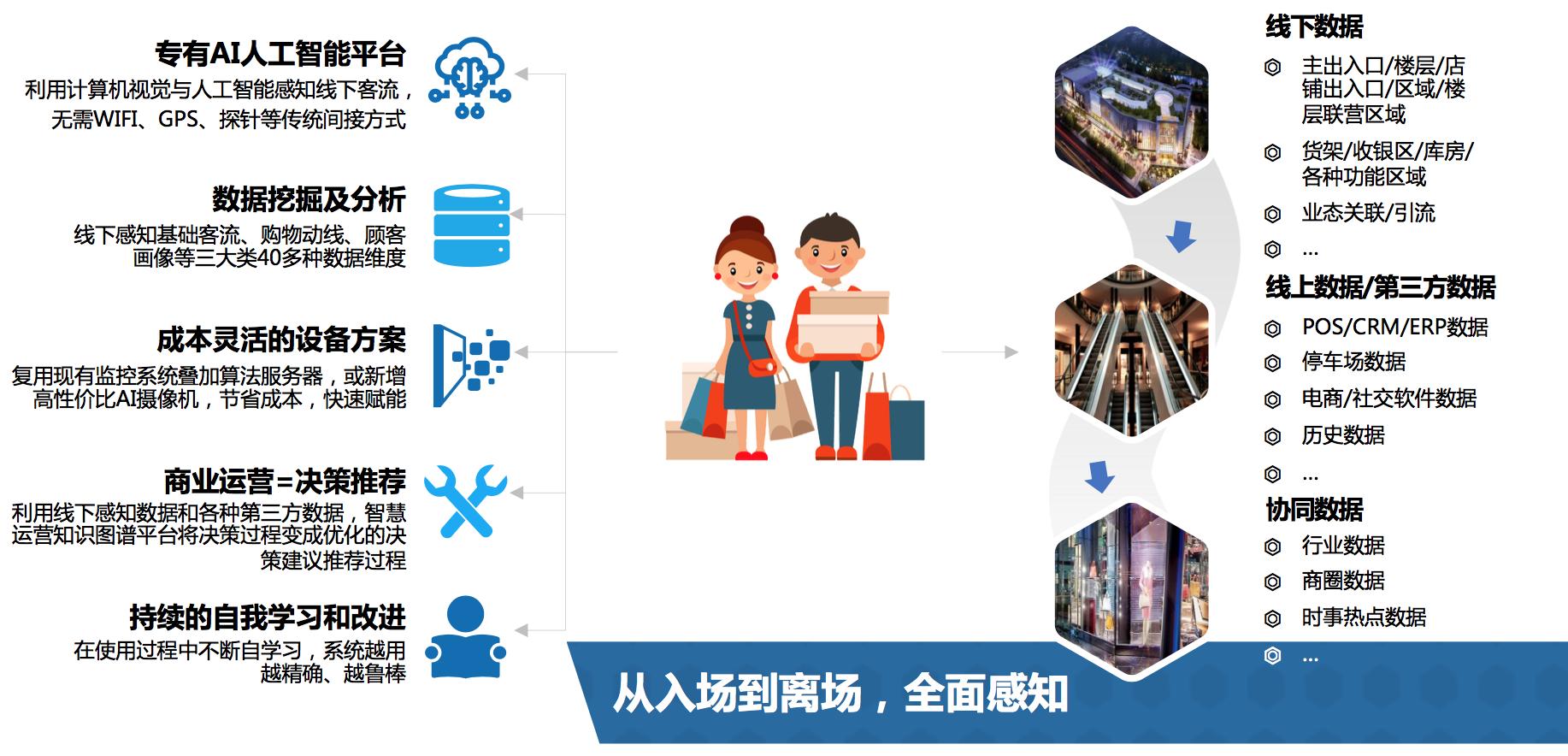 「凌图科技」成立于2019年,主要是通过AI和计算机视觉技术为百货商场、购物中心、零售门店等领域的客户提供实时线下数据感知、可视化、分析与运营决策推荐平台。具体而言:AI驱动的平台,可以为实体经营者提供直接、实时的分析数据,提升流量转化;视觉识别技术加上大规模、本地化的并行视频处理能力,帮助管理者了解线下环境中的顾客行为和流量指标;大数据和AI预测分析的功能,能够为多种购物场景做基础支撑,吸引更多的线上消费者走向线下,并结合运营决策推荐能力,为管理者带来持续收益。