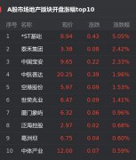 乐居财经讯 3月3日,截至发稿,上证指数跌0.24%,报收3500.16点,深证成指跌0.48%,报收14679.83点,创业板指跌0.53%,报收2951.29点。 A股房企股板块开盘涨幅位居前十位的是,*ST基础涨幅