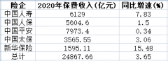 中国经济网北京1月19日讯 截至昨日晚间,A股五大上市险企2020年保费收入已全部出炉。中国人寿、中国人保、中国平安、中国太保和新华保险共揽入保费收入约2.49万亿元,同比增长3.