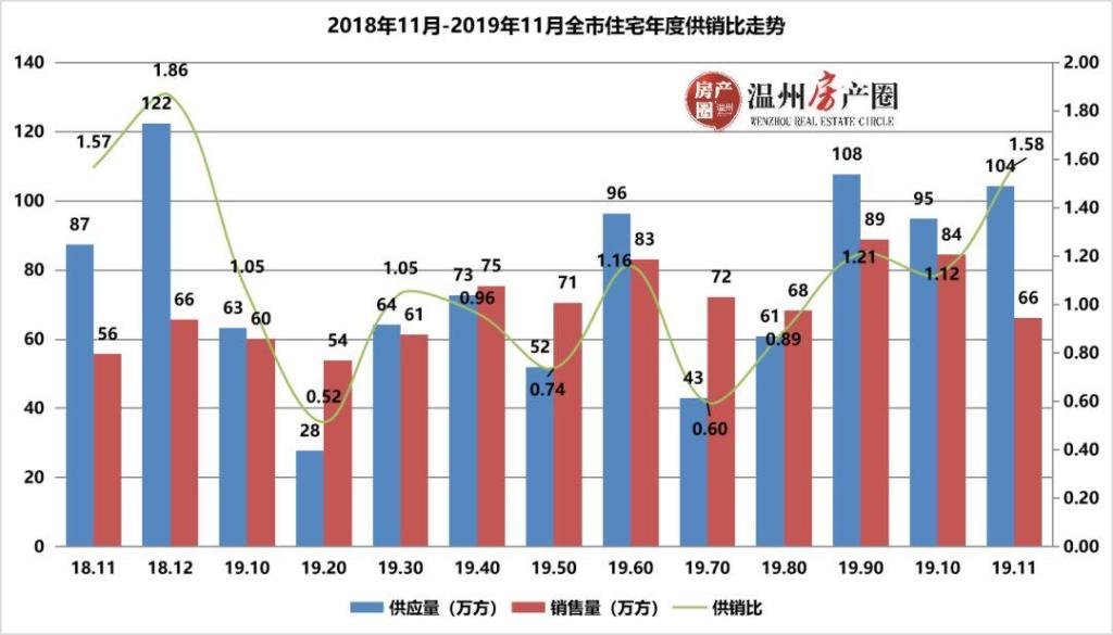 原标题:温州楼市11月报:一、二市场成交热度降温明显,全市供销比上浮至1.58,供大于求