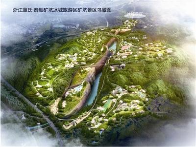 辉绿岩矿石遗址,是一座废弃的青石板老矿山。上个世纪八十年代被启用,20多年的开采,形成了一个峡谷地带。浙江章氏·泰顺矿坑冰城旅游区选址于仕阳镇国保仕水碇步南侧,占地面积约1000多亩,计划总投资14多亿元,泰顺县重点项目之一。第一期投资3.5亿元,该项目充分利用仕阳独特的辉绿岩矿坑遗址和仕水流域丰富的历史人文资源,按照“一轴两翼五核十八景”的总体布局,全力打造全国知名华东首家矿坑游乐研学旅游目的地。景区现阶段计划有集散广场、樱林穿越卡丁车、水上乐园、四季花海、欢乐动物城等五大核心板块,主要建设内容初步规划包括游客服务中心、时光隧道、空中穿越、空中铁索桥、花卉体验房、悬崖秋千、无界泳池、水上乐园、嬉戏沙滩、美食广场、欢乐草原、动感滑草、章氏主题酒店、欢乐动物城、石头迷宫、四季花海、露营基地、空中飞人等18大景点,计划2年~3年内全部建成。