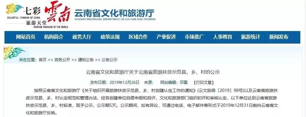 日前,根据云南省旅游扶贫示范县、乡、村认定规范和管理办法,经云南省文化和旅游厅组织初评和审核认定,我市2个县、3个乡、10个村上榜,占每个类别认定总数的十分之一。