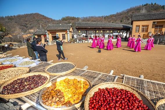 近年来,新县田铺乡田铺大塆大力发展乡村旅游,以“乡村创客”为主题,将大众创业、万众创新融入美丽乡村,将创客平台与文化旅游相结合,采取“党支部+合作社+运营公司+农户”模式,大力实施乡村环境亮化、绿化、净化工程,打造河南省首家“创客小镇”,成功将国家传统村落打造为国家AAA级旅游景区,已建成花音年代咖啡厅、伴手礼等创客空间20余家,吸纳120余人就业,探索出一条文化旅游促脱贫的新路子。图为昨日游客在田铺大塆观赏文艺演出。 信阳日报全媒体记者 王 哲 摄