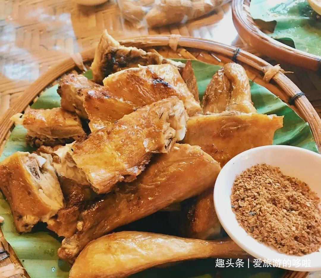勐海烤鸡,采用的是新鲜仔鸡,用炭火烤制20分钟,皮焦肉嫩多汁,香气扑鼻。