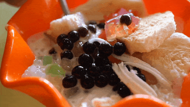 从缅甸传入的饮料,奶茶和五颜六色的小料搭配起来非常好看。