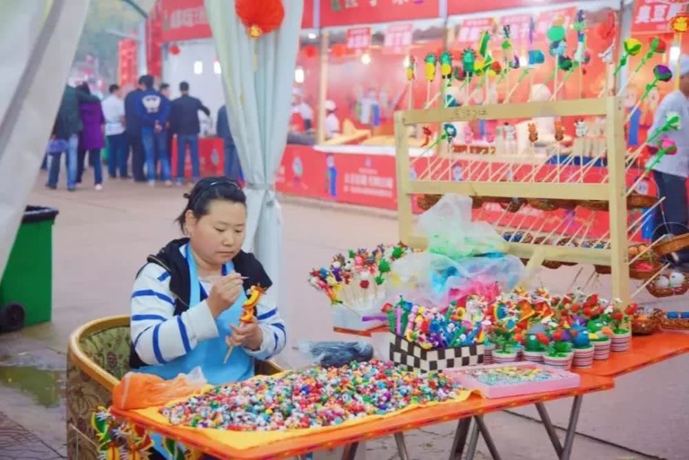 非遗市集上,有吹糖人,有皮影戏,有打糕,有各种手工艺品的制作和展示,还有儿童嘉年华,让小朋友们玩得开心。