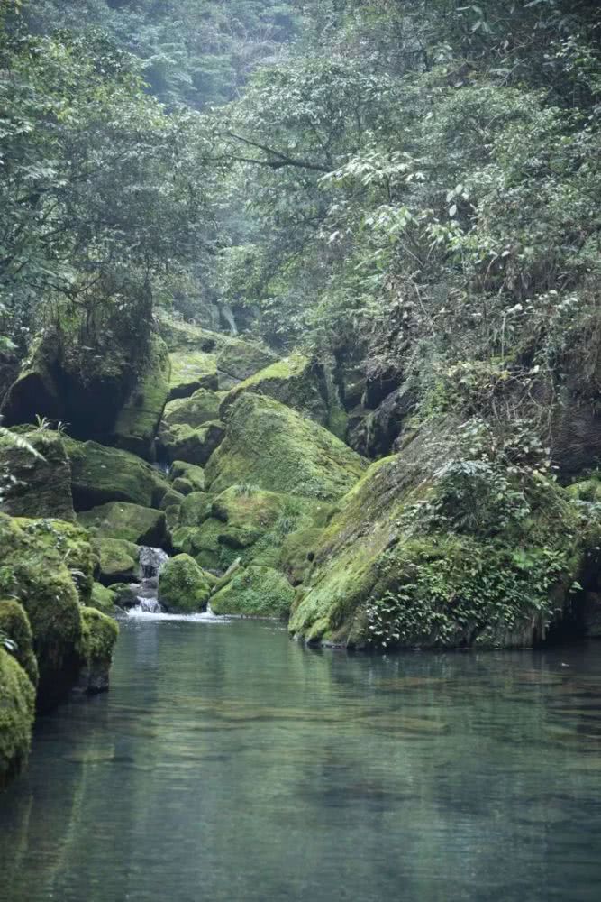 继续前行。突然,令人震撼的绿撞入眼帘。绿水、绿草、绿树,连巨石居然也是绿的。似乎这满满的绿嗖的一下窜入了我的心底,我屏住了呼吸,呆呆地看着望着。