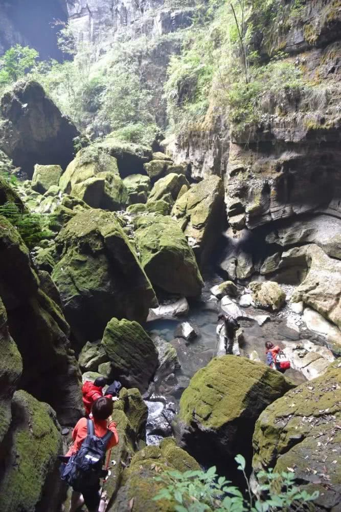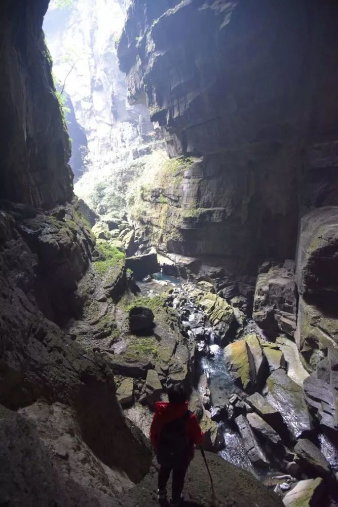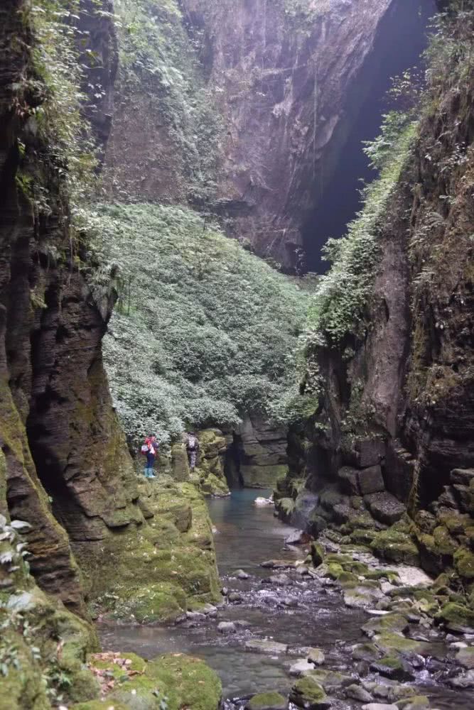 注2:内口河的精华部分约3公里,转一圈回到下车处约6.6公里。过石桥逆水而行,走完一段长约2公里的小峡谷之后,见一洞。出洞是一个天坑的底部,入另一洞,洞中有水渠,拦水坝处是尽头。宜11:00~14:00之间游玩。