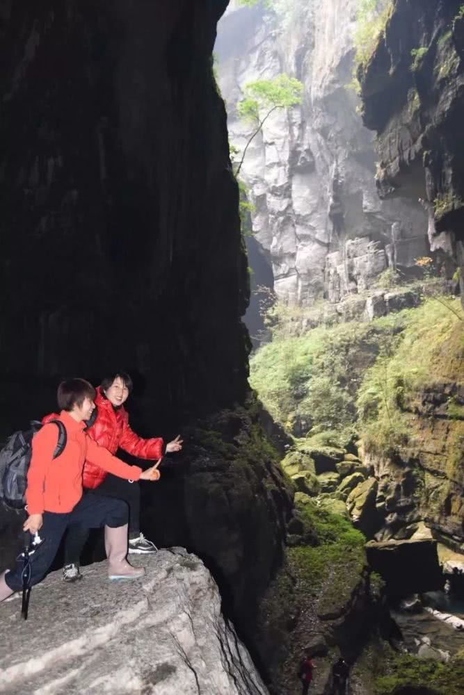 吃过简单的午餐,与同伴们洞中前行。断崖边,纷纷拍照。恐高的我也挑战了一回。