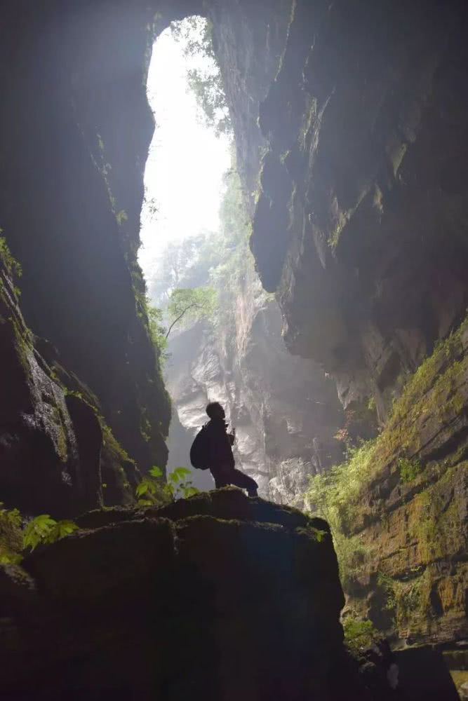 微亮的洞口,那一抹峭璧上的绿尤为可爱。