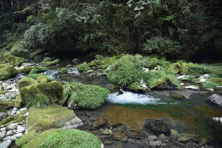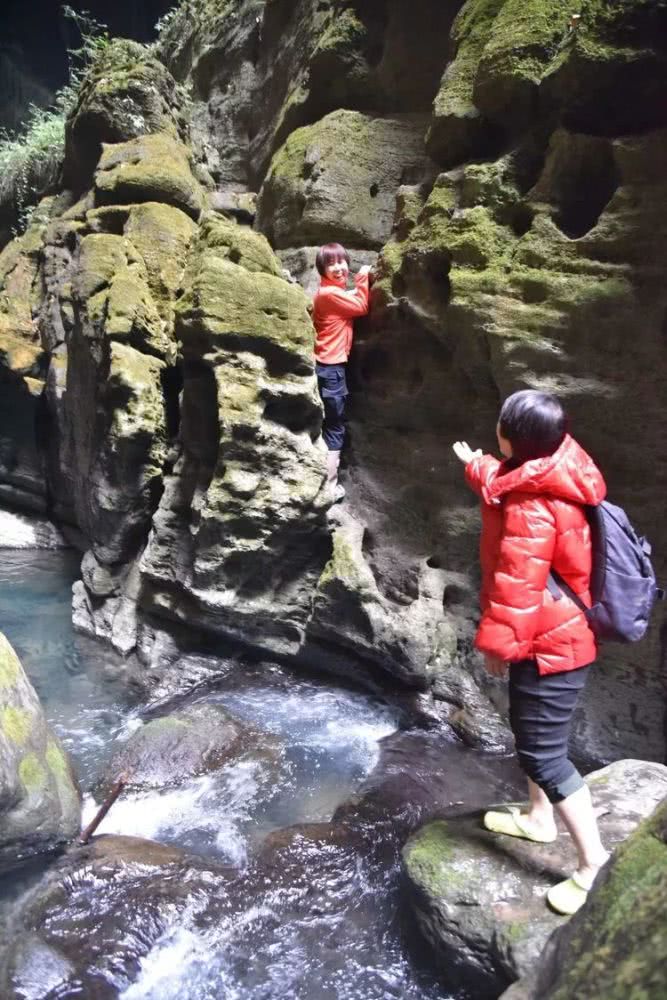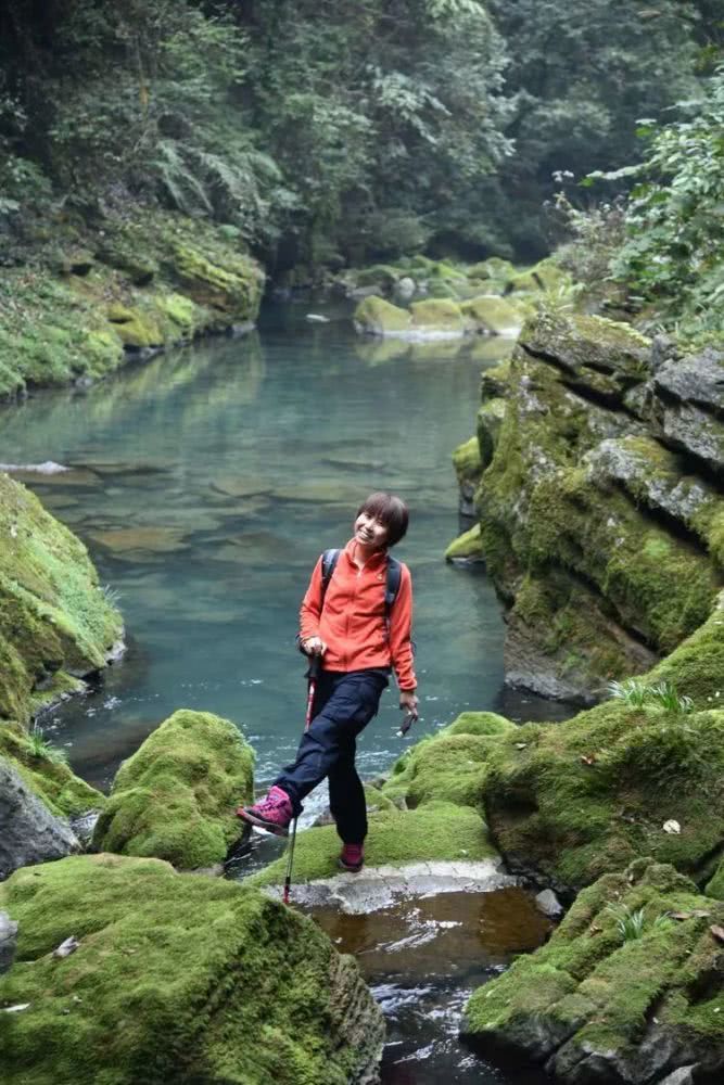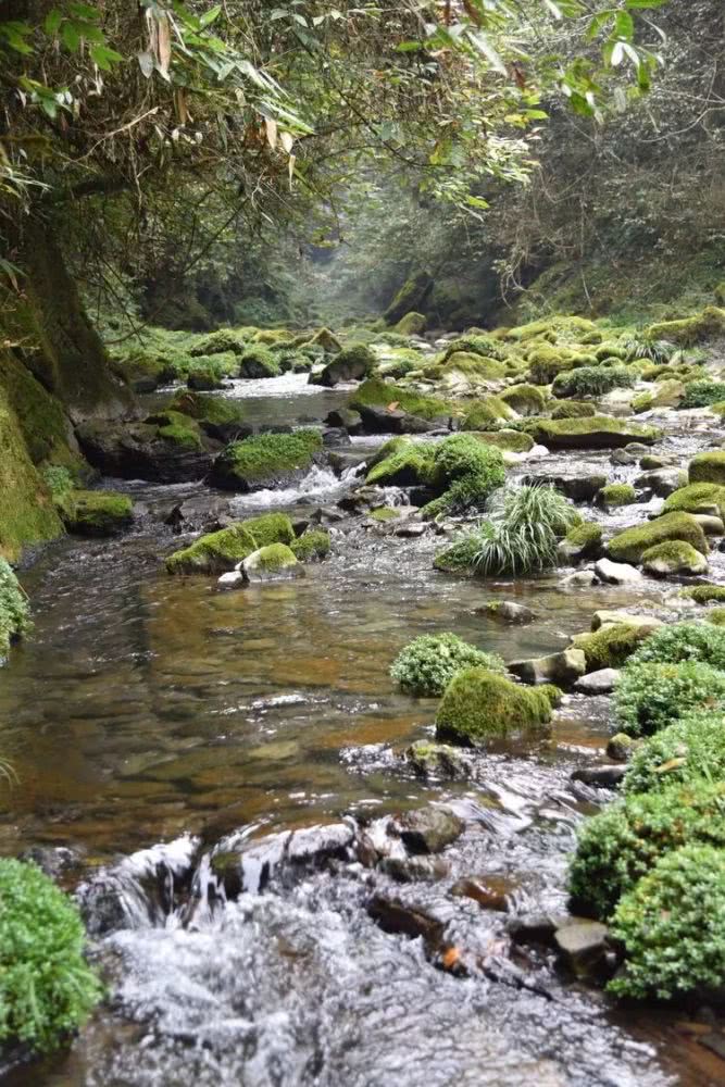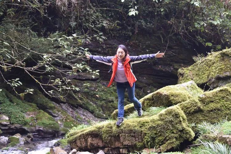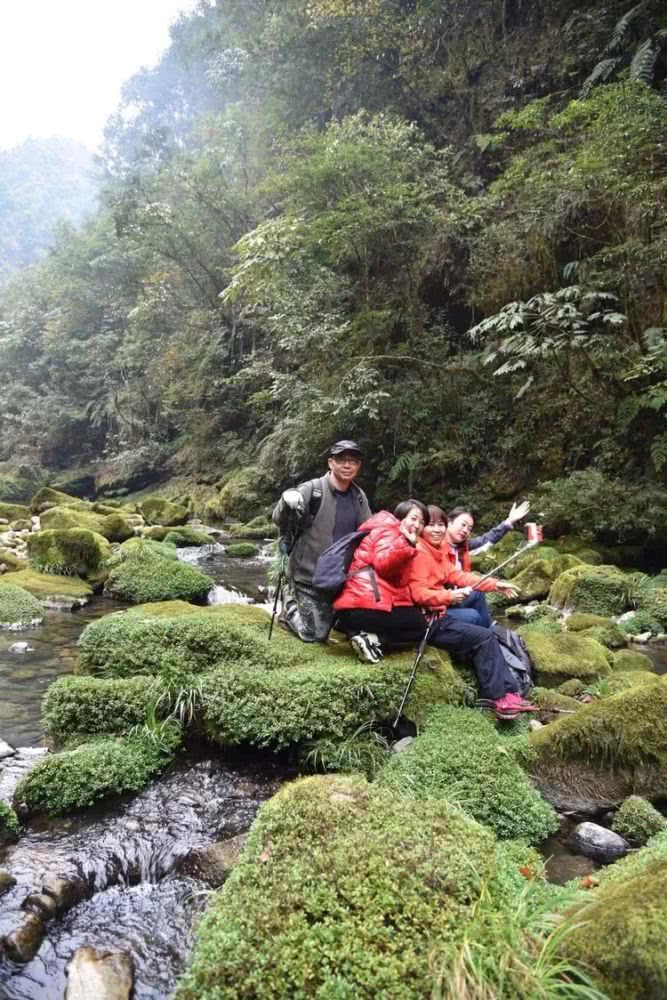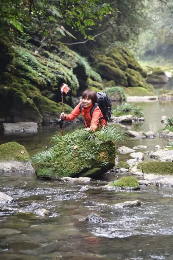 这些被苔藓包裹的石头一点也不湿滑,走在上面就像踩在柔软的小地毯上一样。大伙惊喜不已,欢快地拍单身,拍合影。