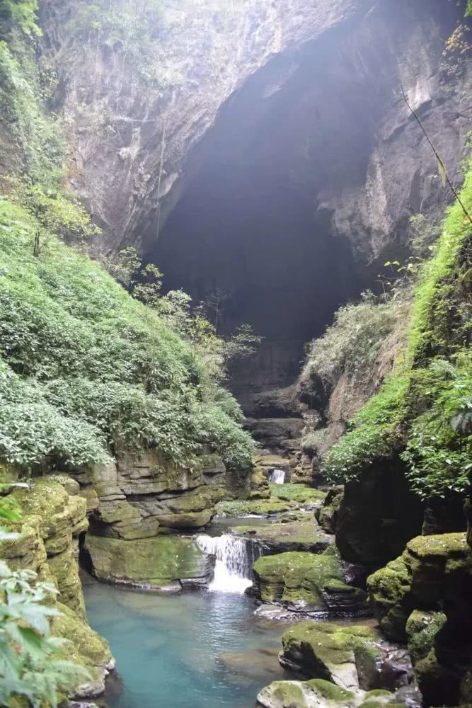 右侧的那个洞貌似一个山洞,实则很浅,算不上是山洞。左侧黑漆漆的山洞才是绿色世界的尽头,清澈的内口河就是源自此洞。