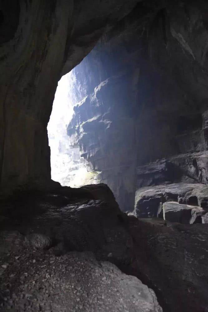 洞口回望,我们走过的那个洞也许再过若干年,高高的洞顶将会坍塌下来,终将成为峡谷中的一段。