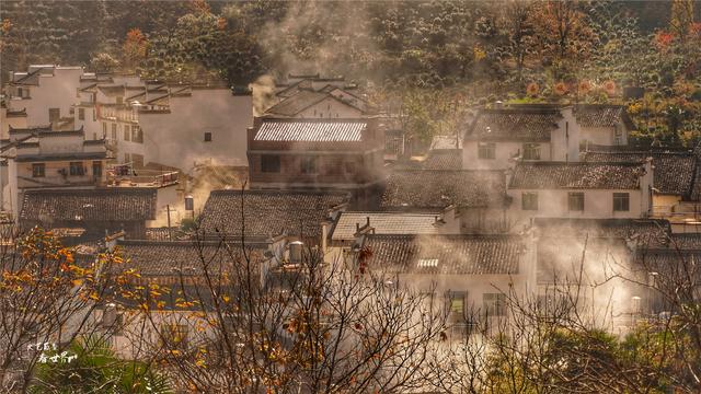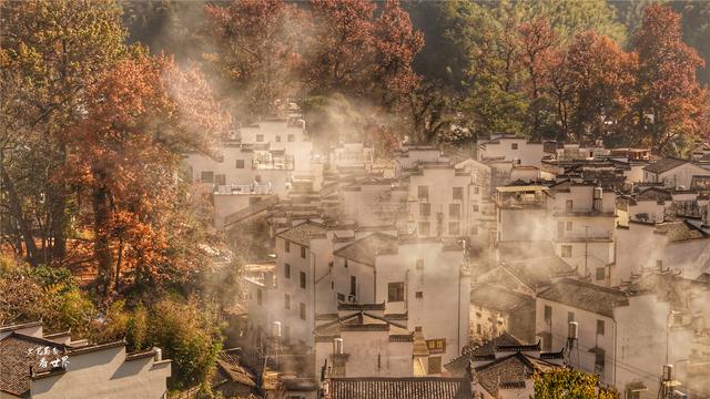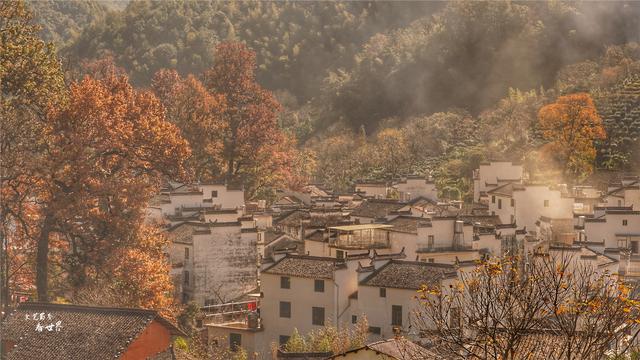 程村的那些古枫,树高都在35米以上,历经深秋初冬的浓霜,枫树开始变红,整个石城华丽丽地变得层林尽染,万山红遍的模样。假如运气好,遇到晨雾萦绕在古村落之间,程村粉黛白墙若隐若现,恍如天上人间般的虚幻缥缈,这就是让摄影师们蜂拥而至的理由。