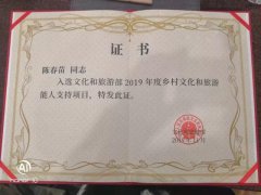 近日,临渭区非遗项目《临渭草编》省级代表性传承人陈春苗获文化和旅游部2019年度乡村文化和旅游能人支持项目荣誉称号,并于12月10日至16日在成都参加由文化和旅游部人事司主办的