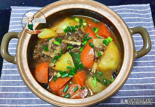 煮好连同砂锅一同端上餐桌撒上少许的葱花点缀提香即可享用,这样一道家常版的:红萝卜土豆焖牛排骨就做好啦。这样炖出来的牛排骨软烂又入味,土豆鲜香软糯,非常好吃又下饭,冷天来上一锅,下饭也下酒,滋补暖胃又暖身,适合全家人一起享用,简单好吃的做法分享给你,喜欢可以试试哦。
