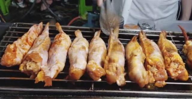 塞满米饭的鸡翅,出摊的时候就可以直接放在烤架上烤了。老板还说自家的“开挂鸡翅”里面包裹的不是普通的米饭,而是糯米饭,而且糯米饭在做的时候不是用水煮的,而是在大锅上蒸制而成,所以口感会好很多,蒸好的糯米饭塞在出来好的鸡翅里面,塞满后就能看到鸡翅大出好几倍,在烤之前还需要在调料里面腌制一会!这样的鸡翅老板卖20元一个,小编一开始觉得有点贵,但是食客们都说,尝过的人都说不贵,因为味道真的好!