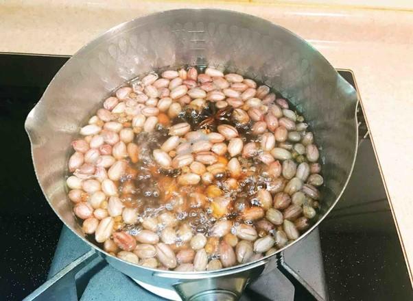 7.泡好的花生米大火烧开后转中小火煮10分钟。