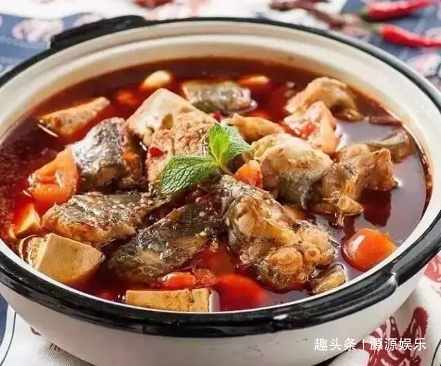 3、入菜籽油、猪油烧热,下蒜子爆香,放糍粑辣椒、豆瓣酱、糟辣椒炒香,加高汤煮沸,捞去一部分辣椒渣,放入乌江鱼块、豆腐块,加盐、鸡粉、味精、香醋、酱油、花椒面、胡椒粉调味,小火慢㸆,待鱼肉煮至七分熟,放入西红柿块,煮至鱼肉成熟入味,出锅盛入容器中,撒薄荷叶、青蒜段即可。