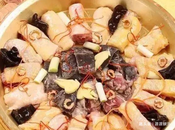 5、食用时前半小时,将鸡翅膀甲鱼去掉葱姜,加入口蘑、鸡汤1000毫升上笼蒸熟后取出,撒上胡椒粉和葱段,随上姜醋汁两小碗即可。