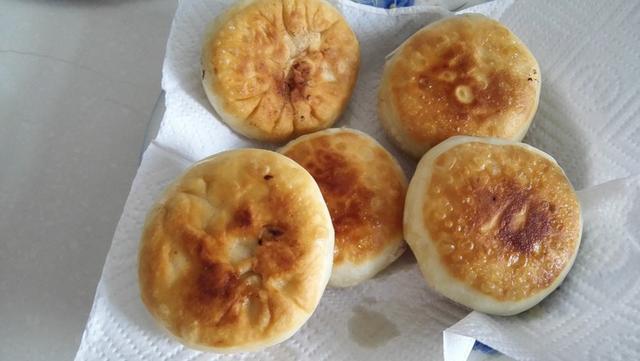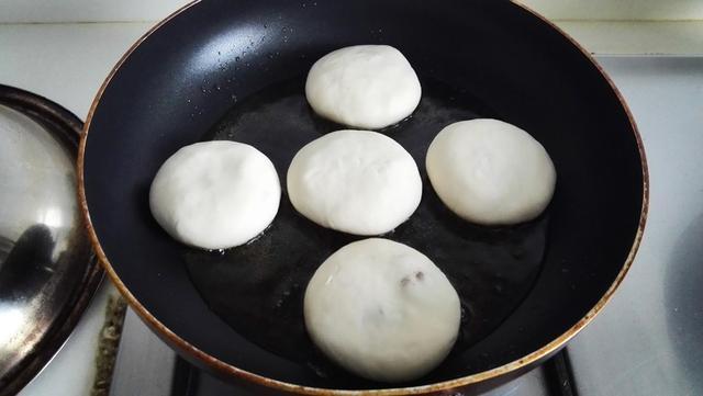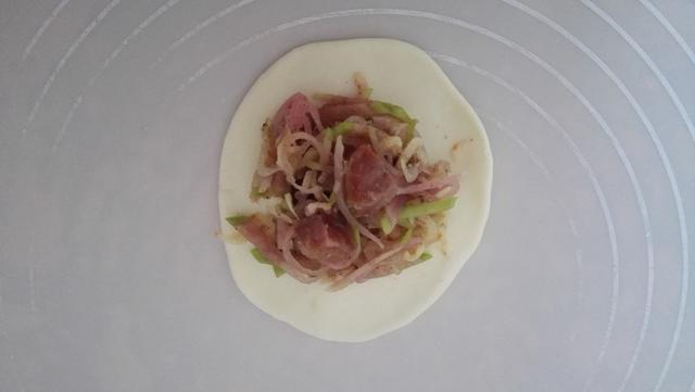 12.平底锅加少许油,放入腊肠饼煎